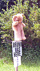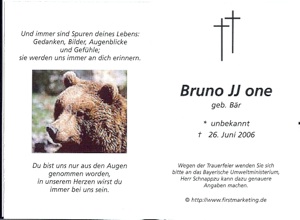 Die Emotionen über den Tod von Bruno, dem Bären sind schon erstaunlich. Auf dem Weg von Rottach Egern nach Kreuth findet man diese Erinnerungen am Strassenrand der Bundesstrasse. Es zeigt, dass Bruno auch hier im wunderschönen Tegernseer Tal war und sich vielen „gezeigt“ hat- er hat Spuren hinterlassen durch Räubern eines Bienenstockes und durch Spuren im Gras und auf den Wegen. Er hat es sich dort gut gehen lassen, wo die CSU- Politiker gern tagen. Ich bin nun in den nächsten Tagen unterwegs auf den „Spuren des Bären“ und werde aufzeigen, welche Erinnerungen sich in den bayerischen Bergen finden.