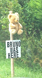 Der Abschussort von Braunbär Bruno in den bayerischen Alpen nahe Schliersee wird zur Gedenkstätte. Unbekannte haben dort, wo Bruno vor eineinhalb Wochen getötet wurde, zwei Kreuze aufgestellt.