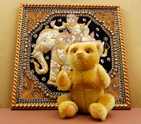 das Esala Perahera Fest. Es findet jedes Jahr statt und dauert zwei Wochen lang. In Kandy einer Stadt auf Sri Lanka wird in einem Tempel ein Zahn von Buddha als heiliges Andenken aufbewahrt. Daher wird das Fest auch „Heiliges Fest des Zahnes“ genannt. Der Höhepunkt der Feierlichkeiten ist eine Prozession mit Elefanten, die glanzvoll bestickte Gewänder tragen. Einer der Elefanten trägt auf seinem Rücken einen Kasten mit dem Zahn Buddhas durch die Straßen. Begleitet werden die Elefanten von Tänzern, Musikgruppen und hunderttausend Pilgern. Unser Buddha hat sich eine Kopie des Zahnes aus Sri Lanka mitgebracht.