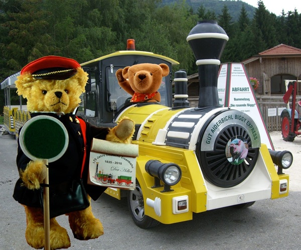 Bruno und seine Teddybären- Freunde machen einen Ausflug mit dem Biggy Express zum Gut Aiderbichl.