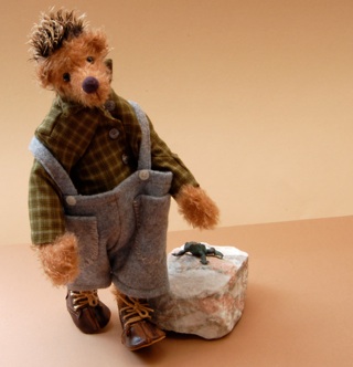 Igelbärt ist von Clemens Spieltiere (Design: Martina Lehr) und hat ein Gardemaß von 32 cm. Er ist aus braunem Sparse Mohair und trägt eine weit geschnittenen Hose - super modern -, ein kariertem Hemd und handgefertigte Schuhen.