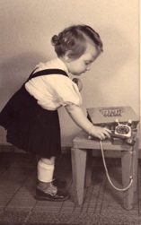 Lang, lang ist es her... mein erster Teddybär Sonnyboy kam Anfang 1951 ins Haus und da war ich ca. fünf Monate alt. Doch ich war sehr wissbegierig, wie man auf diesem Foto von 1952 erkennen kann und beherrschte schon die Kunst des Telefonierens... vielleicht um mich mit anderen Sammlern auszutauschen?