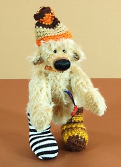 Er ist ein Clemens Bär und ca.10 cm groß. Seine Kleidung ist individuell auf seinen Geschmack abgestimmt und echt Hand-gestrickt.