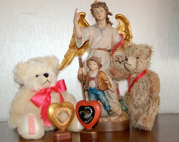 Er präsentiert sich hier mit dem „Schlüssel zum Herzen-Bär“ und einem wunderschönen Schutzengel. Mögen sie uns immer beschützen!
