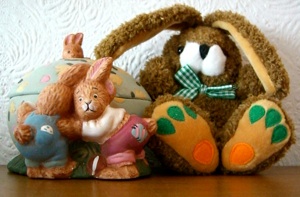 Ich bin der Stummelschwanzhase von Steiff und erfreue mich an grandiosen Osterfiguren und meinem „no names“ Freund Pfötchen