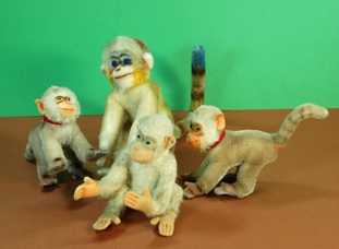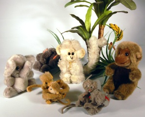 Die kleinen Äffchen haben einen „festen“ Kopf und sind mit Häkelanzügen von unserer lieben Mama ausgestattet worden, um die kalten Temperaturen zu ertragen....Auch die Orang-Utans und die der Gorilla sind von Steiff. Aber auch unser „no names“