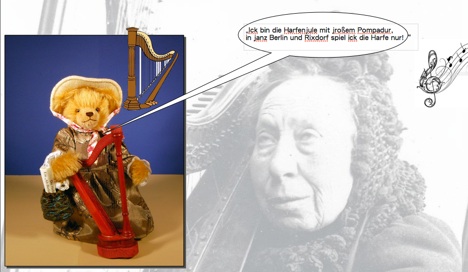 Die Berliner Harfenjule ist zu ihrem 186. Geburtstag in 2011 kreiert worden. In der "Pompadour" Handtasche befindet sich das Textblatt "Die Harfenjule". Der Schriftsteller Klabund setzte der historischen Harfenjule ein literarisches Denkmal. 1927 veröffentlichte er den Gedichtband „Die Harfenjule. Neue Zeit-, Streit- und Leidgedichte“. Seine Gedichte, Chansons und Bänkellieder greifen ins pralle Leben von Berlin in den zwanziger Jahren.