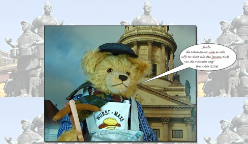 Unser Teddybär Berliner „Wurst-Maxe“ ist der neunte Teddy aus der Sonderedition „Alt-Berliner Originale“ von „Teddy‘s“ in Berlin im Nikolaiviertel.