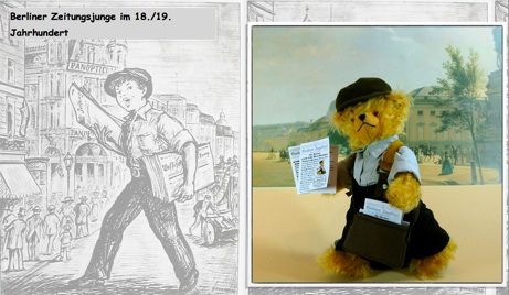 Die Berliner Zeitungsjungen waren im Berlin des 19. Jahrhunderts ebenso wie die Schusterjungen und Bolle- Milchjungen Lümmel, oder auch „Lauselümmel“ genannt, weil sie in den Hausfluren immer wieder Unsinn machten beim Austragen ihrer Zeitungen. In Latzhose mit Hosenträger und blauem Hemd gekleidet, Mütze gegen schlechtes Wetter auf dem Kopf und in der Umhängetasche die Extrablätter oder andere Tageszeitungen - so verdienten sie sich etwas zum kargen Unterhalt ihrer Familien dazu.