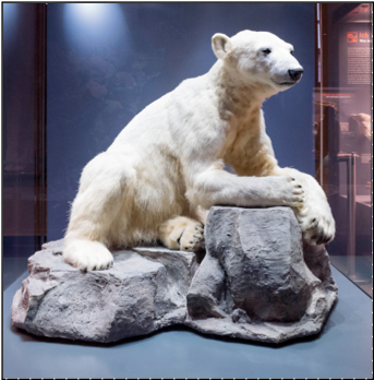 Ein Präparat aus Knuts echtem Fell, einem Kunststoffkörper und Glasaugen ist im Berliner Naturkundemuseum ausgestellt.