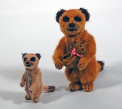 Was hat sie da nur wieder geschaffen: die beiden sind eine Auftragsarbeit von Petra Hankofer vom Juli 2020: kleine „Manni“ ist 7 cm hoch und aus Long Pile Stoff handgenäht. Die Farbakzente sind nachträglich mit japanischen Copicstiften gesetzt. Der größere ist der „Ferdl“ und ist 12 cm. Er ist aus einem Ministoff mit dichtem Flor handgenäht.