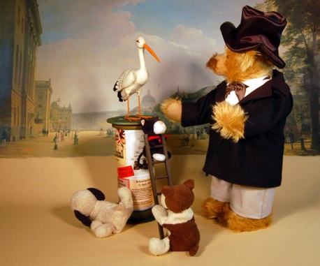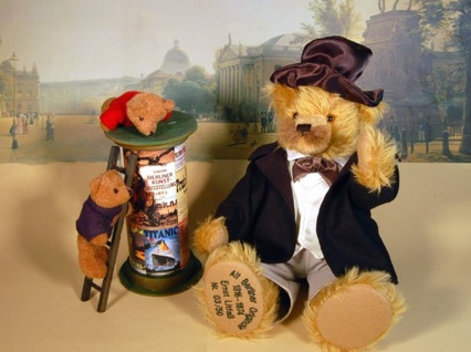 Seit Januar 2011 gibt es in Berlin den Litfaß-Platz. Der Platz entstand auf dem neu bebauten Gelände südlich des Bahnhofs Hackescher Markt, dem Hackeschen Quartier. Ernst Litfaß hat sich seine Litfaßsäulen oft angeschaut und wie in Berlin üblich, sind es einige spezielle Freunde bärigen Geblüts, die seine Werbung begutachten.