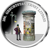 Ernst Theodor Amandus Litfaß ist am 11. Febr. 1816 in Berlin geboren und am 27. Dez. 1874 in Wiesbaden verstorben, begraben auf dem Dorotheenstädtischen Friedhof in Berlin-Mitte. Er begann seine Karriere nach ausgedehnten Bildungsreisen durch Europa als Schauspieler und gründete das Theater Lätitia in Berlin. Mitte des 19. Jahrhunderts übernahm er das elterliche Druck- und Verlagshaus. Aufgrund seiner „unverbrüchlichen Treue zum königlichen Hause“ wurde er 1861 zum „Commissions-Rath“ und 1863 zum Königlichen Hof-Buchdrucker ernannt. Später erhielt er vom preußischen König das alleinige Recht zur Veröffentlichung der Kriegsdepeschen und Siegesmeldungen aus den Kriegen 1866 und 1870–1871. Als Höhepunkt wurde ihm der Titel „Geheimer Commissions-Rath“ verliehen. Populär wurde Litfaß aber mit der Formatvergrößerung und Ausstattung von Anschlagzettel, die danach Litfaßzettel genannt wurden. Helfer zum Ankleben der Zettel hatte er durch die Litfaßsäulenjungs.