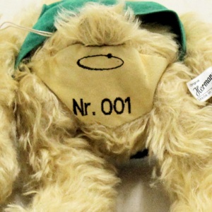Ewald, ein Künstlerbär von Hermann Coburg und Design Annette Rauch (32 cm, hellbeige) - gerettet nach 24 Jahren aus dem Archiv von Hermann Coburg in den Rauhnächten zwischen den Jahren 2019/2020. Hergestellt wurde er 1995 und hat die Einzelnummerierung auf dem „Po“ gestickt!