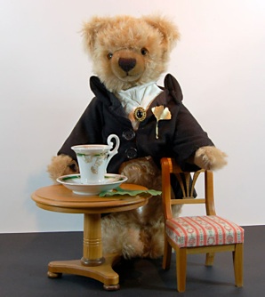 Goethes Frack ist mit einer Anstecknadel geschmückt, die in Form eines Gingkoblattes aus Gold designded wurde und unserer Bärenoma gehörte.