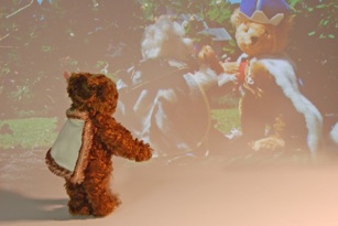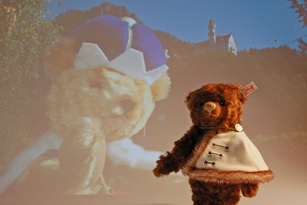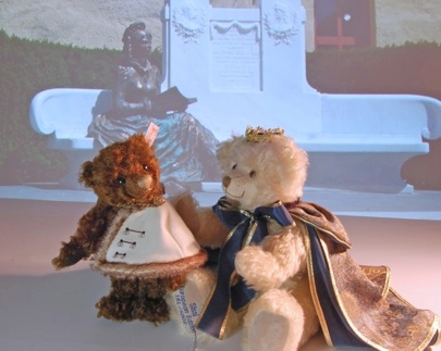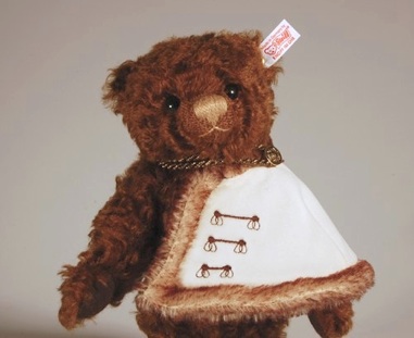 Der Bär „Graf Gyula Andrássy“ ist mit einem cremefarbenen Umhang ausgestattet wie er vom ungarischen Adel zu festlichen Anlässen getragen wurde.