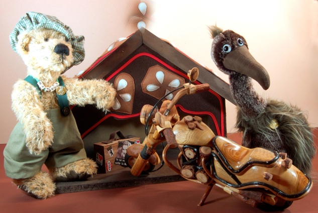 Lassen Sie sich bezaubern von zwei Burschen, die -von Monika Wenzel geschaffen- sich trafen, um im Bärenmuseum Spaß zu haben.....