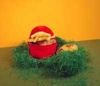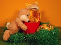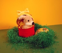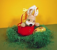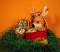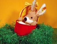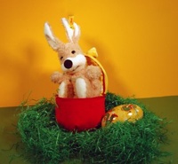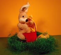 Unser Steiffhäschen ist 2015 im eigenen Stoffei zu uns gekommen und erkundet langsam, was es Interessantes zu beobachten gibt... liebevoll bewacht vom hasigen Elternpaar.