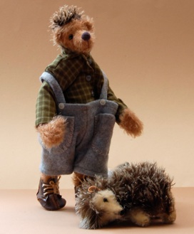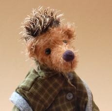 Igelbärt ist von Clemens Spieltiere (Design: Martina Lehr) und hat ein Gardemaß von 32 cm. Er ist aus braunem Sparse Mohair und trägt eine weit geschnittenen Hose - super modern -, ein kariertem Hemd und handgefertigte Schuhen.