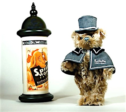 Der KaDeWe-Teddy von Steiff ist der einzige Portier in Uniform, der aussieht, als sei er direkt aus der gemütlichen alten Zeit übrig geblieben. Hilfsbereit in allen Lebenslagen, spricht er außer “bärisch“ mehrere Sprachen und ist ein Gentleman alter Schule. Er berät jeden unserer Teddys bei der Suche nach den richtigen Einkaufsmöglichkeiten im bekanntesten Warenhaus Deutschlands. 2007 hatte er sein 100. Jubiläum.