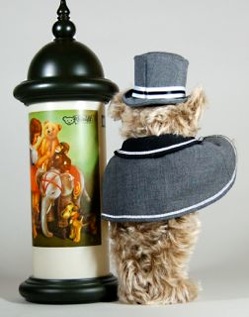 Unser limitierter Portier Teddy von Steiff ist ca. 20 cm groß und aus braun gespitztem, langflorigen Mohair. Er ist im Jubiläumsjahr vom KaDeWe 2007 in einer Auflage von 1.000 Stück hergestellt. Was macht denn so ein Portier.........