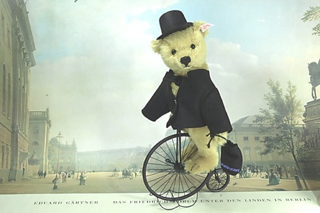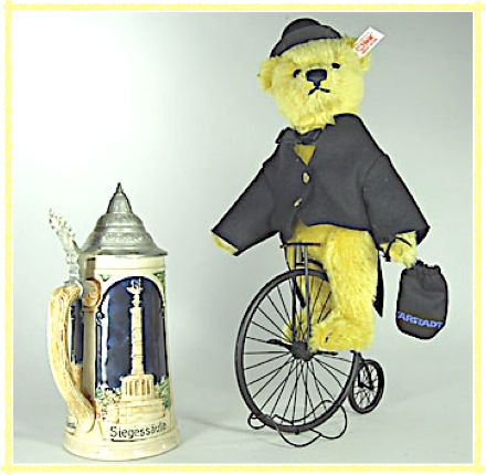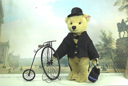 Zum 125 jährigen Firmenjubiläum erinnert unser Teddybär an einen Mann mit Unternehmergeist und Gefühl für Balance im Geschäftsleben, was sein fester Sitz auf dem Hochrad zeigt.