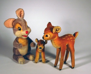 Das freche, junge Wildkaninchen ist einer von Bambis besten Freunden. Klopfer wird oft von seiner Mutter ermahnt, nicht so frech und vorlaut zu sein, und muss häufig die Lebensweisheiten seines Vaters rezitieren, wie etwa: „If you can’t say something nice … don’t say nothing at all!“ (Wenn man nichts Nettes zu sagen hat … dann soll man gar nichts sagen). Klopfer und Bambi sind von Steiff aus den 50er Jahren ; begeistern sich heute an einer Britto Romero Figur.