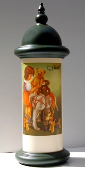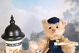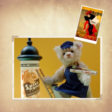 Die Litfaßsäule... das Werbemittel vergangener Jahre... Er ist einer unserer fleißigsten Arbeiter - der Litfaßsäulen Junge von Steiff - der hier neue Plakate anklebt. Schließlich wollen auch Bären wissen, was es Neues gibt!