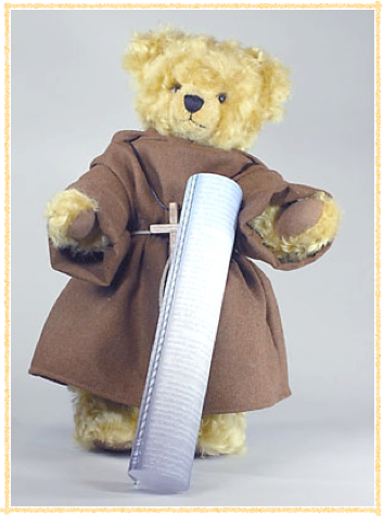 Hier sehen wir unseren Bären Martin Luther vor der Thesentür an der Schlosskirche der Lutherstadt Wittenberg mit einem Auszug aus den 95 Thesen vom 31. Okt. 1517 .