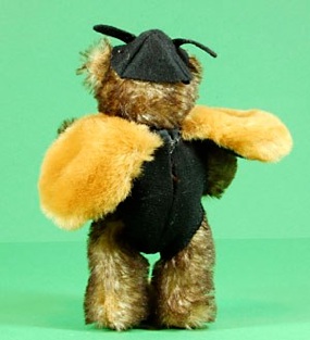 Er hat sich als Maikäfer „verkleidet“ und trägt einen Trikotanzug mit Kappe und fellige Flügel.