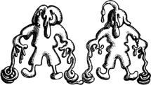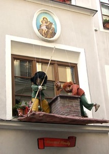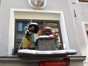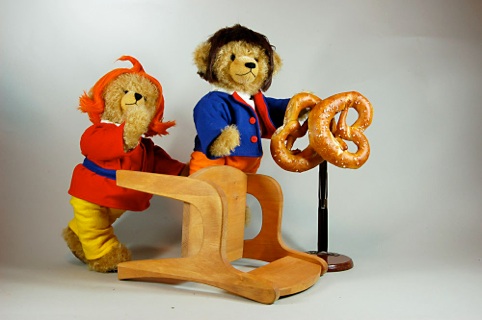 Meister Bäcker ist ja schlau und hat sein Haus versperrt- also klettern unsere beiden Helden durch den Kamin- und landen plumps in der Mehlkiste. Nun wollen sie an die Brezen und wieder plumps- fällt der Stuhl um. Sie fallen in den Kuchenteig und werden vom Meister Bäcker goldbraun gebacken, kauen sich dann aber frei...und der 7. folgt zugleich...