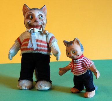 Steiff‘s Gummi-Weihnachtsmänner und die Kater Felix Vater und Sohn- alle aus den 60er Jahren.