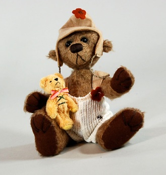 Hallo, und ich bin Balduin mit meinem Bärlyfreund- ein handgefertigtes unikat von der Künstlerin „Anna Dazumal“ (Anja Meier) geboren am 6.12.2006 in Zwickau.