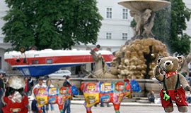 Welch tolle Stadt, aber welch super Teddybär. Mehr zu Mozart und seinem Papageno
