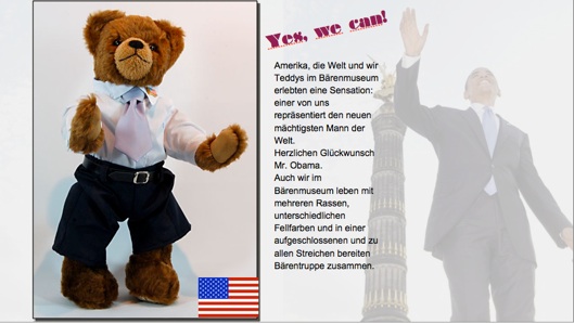 Unser Teddybär ist kreiert zu Ehren des neuen Hoffnungsträgers der USA und der Welt.