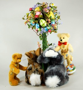 ...Wir finden des Rätsels Lösung nicht- wo nur kommen die Eier her? Alle Hasen schauen fragend und warten auf eine Antwort....