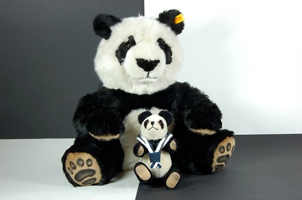 Yin heißt unser großer Steiff- Panda und er wirft zwar im Sommer Schatten auf seinen kleinen Freund Yang, beschützt ihn aber auch.