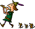 Die Bürger sagten ihm seinen Lohn zu, und der Rattenfänger zog seine Flöte heraus und spielte eine Melodie. Da kamen die Ratten und Mäuse aus den Häusern hervorgekrochen und sammelten sich um ihn herum. Als er nun meinte, er habe alle eingesammelt, ging er aus der Stadt hinaus in die Weser; die süßen Viecher folgten ihm, stürzten ins Wasser und ertranken. Als aber die Bürger sich von ihrer Plage befreit sahen, reute sie der versprochene Lohn, und sie verweigerten ihn dem Mann, so dass er zornig und erbittert wegging.