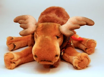Das Renntier ist von Steiff und trägt einen Halsschmuck mit lustigen Glöckchen.