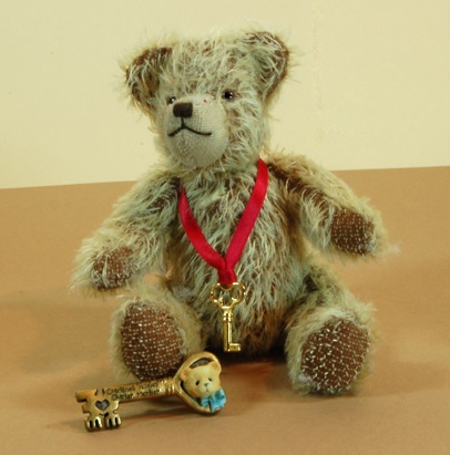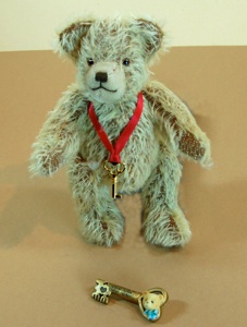 Dieser kleine Teddybär hatte es uns schnell angetan, trägt er doch den Schlüssel zu unserem Herzen um den Hals. Klein und frech präsentiert er sich nun als DER Türöffner für das Bärenmuseum. Ohne ihn geht nichts... und das ist gut so: denn nur, wer unser Herz erreicht, wird hereingelassen- Bärenfan muss er sein!