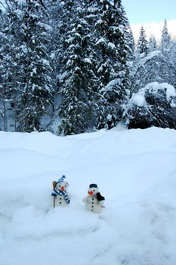 „Die Sonne kann nicht deine Freundin sein!“, sagte die Schneefrau und kam ganz nah zu ihm heran. „Doch, schau nur, da haben wir sie jetzt von der anderen Seite!“. Die Sonne ging unter und der Vollmond ging auf; so dachte der Schneemann, die Sonne erscheine von Neuem. „Die Sonne wird uns Beine machen, das haben mir die Tiere im Wald erzählt“, sagte die neue Schneemannfreundin und kuschelte sich an ihn. „Die da oben soll uns Beine machen? Na klar, als ich sie anstarrte, da ist sie wirklich gelaufen und jetzt schleicht sie sich von der anderen Seite heran“.