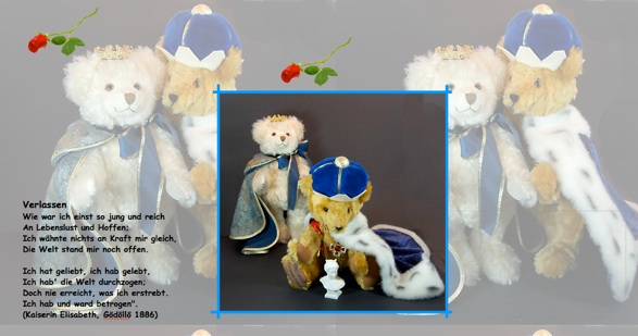 Unsere Teddy-Bärin ist benannt nach der österreichischen Kaiserin Elisabeth, genannt Sissi. Elisabeth ist geboren am 24. Dez. 1837 in München und war durch Heirat ab 1854 Kaiserin von Österreich und ab 1867 Königin von Ungarn. Sissi entstammt der Linie der Herzöge in Bayern und war die zweite Tochter des Herzogs Max Joseph in Bayern (1808-1888) und seiner Frau Prinzessin Ludovika Wilhelmine (1808-1892), Tauf- und Namenspatin war Elisabeths Tante, Königin Elisabeth Ludovika von Preußen (1801-1873).