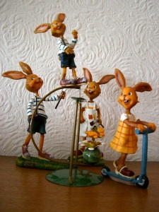 Ich bin der Stummelschwanzhase von Steiff und erfreue mich an grandiosen Osterfiguren und meinem „no names“ Freund Pfötchen