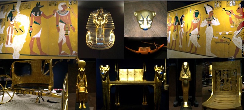 In der Tutanchamun- Ausstellung in München 2015 ist es gelungen, einige Impressionen festzuhalten. Obgleich Nachbildungen, zeigt sich hier die unermessliche Pracht des Grabes Tutanchamuns.