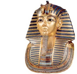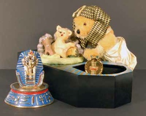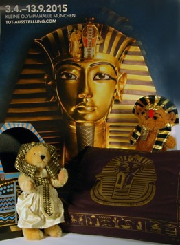 Der kleine Bär, der sich hier mit auf das Foto gesellt hat, ist ein Souvenirbär von der Tutanchamun Ausstellung und sonnt sich im Glanze der Maske seines Herrschers aus Gold.