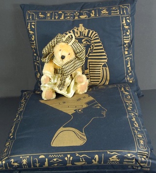 Und wie man sieht, zieren diese Kissen auch sein Antlitz und das von Nofrete.