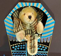Wer mag schon immer in einem Holzkasten sitzen, auch wenn er sich „Sarkophag“ nennt? Nun, ein Teddybär schon gar nicht und deshalb hat sich unser Teddy Tutanchamun ein wirklich gemütliches Plätzchen ausgesucht.