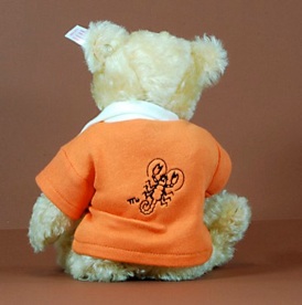 Die Bärin ist ca. 28 cm groß. Ihre Jacke ist vorn mit den Geburtsdaten „3.11.1950“ und hinten mit dem Sternzeichen „Skorpion“ der Besitzerin bedruckt.