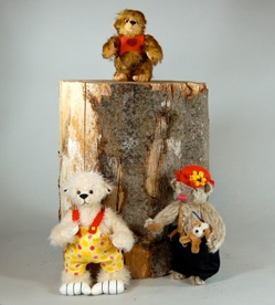 Schon bald erlebt Valentin die erste Überraschung; stolz an einen Baumstamm gelehnt, betrachtet er die Welt im Bärenmuseum und staunt, weil alles so bärig großartig ist. Da kommen zwei kleine Freunde (die Beiden stellen sich später vor) und heben ihn erst einmal auf den Baumstumpf, damit er überhaupt alles überblicken kann.