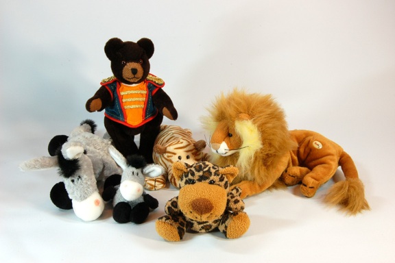 Seine bärigen Tanz-Freunde sind von Steiff...; seine Wildtierdressur macht er mit „non names“ Tieren.